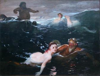 | Keywords: Arnold Boecklin Spiel der Wellen 1883.jpg  Artwork creator Arnold Böcklin de Im Spiel der Wellen 1883 oil canvas cm 180 0 238 0 Institution Neue Pinakothek 7754 http //www pinakothek de/arnold-boecklin/im-spiel-der-wellen Bayerische Staatsgemäldesammlungen Current Upload Own Work Photo taken by Cybershot800i in the Neue Pinakothek Munich Ausgestellt auf der Münchener Jubiläums-Kunstaustellung 1888 Other versions thumb left detail PD-old-100 DEFAULTSORT Bocklin Spiel der Wellen 1883 1880s paintings by Arnold Böcklin Spiel der Wellen Paintings in the Neue Pinakothek Tritons Paintings of centaurs Nereids Paintings of fish Skinny dipping in art 1883 paintings 19th-century oil on canvas paintings in Germany 1880s paintings in Bavaria Humans with fictional creatures 1880s mythological paintings |