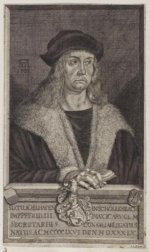| Keywords: Arolsen Klebeband 03 173 3.jpg Grafik aus dem Klebeband Nr 3 der Fürstlich Waldeckschen Hofbibliothek Arolsen Motiv Sixtus Oelhafen von Schöllenbach Jurist um 1466-1539 nach dem Porträt von Hans Schäufelein Werkstatt Albrecht Dürer http //digi ub uni-heidelberg de/fwhb/klebeband3 century 18 Johann Alexander Boener after http //www portraitindex de/dokumente/html/obj33901678 Portraitindex http //www schloss-eismannsberg de/image05 jpg schloss-eismannsberg de PD-old-100 Arolsen Klebeband 3 Sixt Oelhafen von Schöllenbach Hans Schäufelein Male fur clothing in art Johann Alexander Böner Albrecht Dürer 1703 works in Germany |