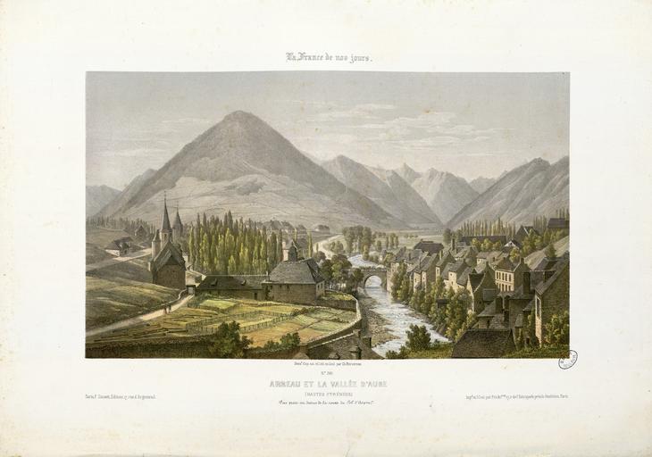 | Keywords: Arreau et la Vallée d'Aure (Hautes Pyrénées) - Vue prise au dessus de la route du Col d'Aspin - Fonds Ancely - B315556101 A MERCEREAU 7 013.jpg Impression en 3 coul par Frick frères à Paris Fait partie d'un ensemble de recueils de lithographies de Mercereau composés de lithographies provenant de La France de nos jours vaste suite publiée par livraisons de 1853 à 1876 et comprenant 475 planches en deux tirages l'un à deux teintes noir et bistre l'autre en couleurs Les libraires ont réuni ces planches en albums de composition variable quant au nombre de planches et aux dessinateurs Asselineau Mercereau Maurice Deroy etc Un titre Les Pyrénées par Ch Mercereau; Bagnères-de-Luchon par Ch Mercereau était frappé sur le plat supérieur de la reliure de l'album ainsi que le nom du Libraire pour lequel il était réalisé La plupart des recueils de ces planches pyrénéennes portent le nom de Sajous libraire à Bagnères-de-Luchon Pl 1 à 18 numérotées de 370 à 386 Pl 374 pl 5 et 6 en double -- Pl 19 20 et 21 numérotées respectivement 407 415 et 418 Ces trois pl ont été dessinées et lithographiées par Asselineau -- Pl 22 23 et 24 numérotées 438 439 et 440 -- Pl 22 lith par Aubrun -- Pl 25 numérotée 441 -- Pl 26 à 40 numérotées de 327 à 341 -- Pl 41 à 46 numérotées de 363 à 368 -- Pl 47 numérotée 369 -- Pl 48 num 292 -- Pl 49 et 50 num 264 et 265 -- Pl 51 et 52 num 268 et 269 -- Pl 53 à 55 num de 293 à 295 -- Pl 56 num 300 -- Pl 57 à 59 num de 307 à 309 -- Pl 60 à 70 num de 316 à 326 -- Pl 71 num 63 dessin et lith d'Asselineau imprimerie Destouches -- Pl 72 et 73 num 87 et 88 dessin et lith d'Asselineau imprimerie Destouches -- Pl 74 num 124 signée Lebreton éditée chez Lalonde à Paris et imprimée chez Becquet frères à Paris -- Pl 75 num 161 dessin et litho d'Asselineau imprimerie Destouches --Pl 76 à 78 num de 207 à 209 -- Pl 79 à 81 num de 211 à 213 -- Pl 82 num 220 dessin et lith de Maurice imprimerie Destouches -- Pl 83 à 86 num de 226 à 229 -- Pl 87 et 88 num 234 et 235 -- Pl 89 à 91 num de 273 à 275 -- Pl 92 et 93 num 290 et 291 Pièces jointes 6 pl sépia dont certaines sont des doubles du recueil de Mercereau Les cinq premières planches sont numérotées respectivement 318 321 324 331 386 La dernière planche n'est pas extraite de La France de nos jours mais de L'Espagne pittoresque et monumentale Ces six planches sont signées Mercereau éditées chez Sinnet et imprimées chez Frick frères Ancely René 1876 - 1966 Possesseur fre public domain domaine public B315556101_A_MERCEREAU_7_013 jpg image/jpeg 1 f de pl lithogr ; 32 cm oblong Frick frères Imprimeur Sinnet F Éditeur http //numerique bibliotheque toulouse fr/collect/general/index/assoc//ark /74899/B315556101_A_MERCEREAU_7_013 dir/B315556101_A_MERCEREAU_7_013 jpg Bibliothèque municipale de Toulouse A-MERCEREAU 7-13 Creator Charles Mercereau http //catalogues toulouse fr/web2/tramp2 exe/do_keyword_search/log_in setting_key BMT1 servers 1home query p001637 St Jean-de-Luz intérieur de l'Eglise St Jean-de-Luz le Château de l'Infante Biarritz Vue générale prise du Phare Château de Mauvesin près Bagnères-de-Bigorre Hautes Pyrénées Bagnères de Bigorre Hautes Pyrénées - Intérieur de l'Eglise des Carmes en couleurs Bagnères de Bigorre Hautes Pyrénées - Intérieur de l'Eglise des Carmes Bagnères-de-Bigorre - Eglise et couvent des Carmes Bagnères-de-Bigorre Hautes-Pyrénées - Tour des Jacobins Cascade et Pont de Magenta Vallée de l'Esponne Hautes Pyrénées Cascade de Trémes-Aïgues Vallée de Grip Hautes Pyrénées St Sauveur Hautes Pyrénées - Le Pont Napoléon Bayonne - Eglise St André Auch - Vue prise sur les bords du Gers Auch - Vue de la Cathédrale Auch - Intérieur de la Cathédrale Bagnères-de-Bigorre - Vue Générale prise de la Fontaine ferrugineuse Eaux-Bonnes Basses-Pyrénées - L'établissement Thermal et la Chapelle Nantes - Vue de l'Eglise Ste Croix Le Croisic - Plage des Baigneurs et Etablissement de Bains Le Folgoët - Vue de l'Eglise Brèche de Roland prise de Gèdres Hautes Pyrénées Chapelle du couvent de Pouëlahun i e Pouey Lahun - Vallée d'Azun Hautes Pyrénées Eglise des Templiers à Luz Le Pont de Scia - Route de Luz à Gavarnie Hautes-Pyrénées Vue de l'établissement de la Raillière près Cauterets Hautes-Pyrénées Vue générale de Cauterets prise du Mamelon Vert Hautes-Pyrénées Vue du Fort de Lourdes Hautes-Pyrénées Vue d'Argelès-de-Bigorre Hautes-Pyrénées Vue de St Sauveur Hautes-Pyrénées Le Pas de l'Echelle Route de Gavarnie Hautes-Pyrénées Fond de la Vallée d'Argelès prise de la terrasse de St Savin Hautes-Pyrénées Place Grammont à Pau Basses-Pyrénées Vue générale des Eaux-Bonnes Basses-Pyrénées Barèges et la Vallée du Bastan Hautes-Pyrénées Chute supérieure du Pont d'Espagne Hautes-Pyrénées La grotte miraculeuse à Lourdes Hautes-Pyrénées Eglise de Bétharram et Pont de Lestelle Basses Pyrénées Cascade du Cerizet Près Cauterets Hautes-Pyrénées Pic du Midi d'Ossau 2885m Basses Pyrénées - Vue prise du 3e plateau de Bious-Artigues Pau - Vue prise de la terrasse du Château Toulouse - Cloître du Musée Galerie du Moyen-Age Pau - Vue du Château prise du Parc Toulouse - Cloître du Musée et Clocher des Augustins Toulouse - La maison de pierre fragment de la façade Toulouse - Intérieur de St Sernin St Jean-de-Luz Fort du Socoa Toulouse - Vue du Capitole Bordeaux Vue de la Porte du Caillau i e Cailhau Bordeaux Porte de la grosse Cloche Bordeaux Vue des Quinconces Bordeaux - Vue de la Tour et de l'Eglise de St Michel Toulouse - Vue du Pont de pierre prise du Quai de Brienne Toulouse - Abside de l'Eglise de St Sernin de l'an 1097 Toulouse - Choeur de la Cathédrale St Etienne Rouen - Hôtel de Bourgtheroulde Biarritz - Vue des Bains Napoléon et du Casino Biarritz - Vue des Bains du Port Vieux Biarritz - Vue de l'Entrée de la Ville à l'arrivée de Bayonne Le Lac Bleu Hautes-P