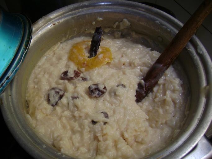 | Keywords: Arroz con leche in a pot.JPG Arroz con leche peruvian style in a pot Note the orange peel prune and cinamon Arroz con leche preparado al estilo peruano en un olla Nótese la cáscara de naranja las pasas y la canela Own 2007-03 Dtarazona Desserts of Peru Citrus zest Rice puddings |