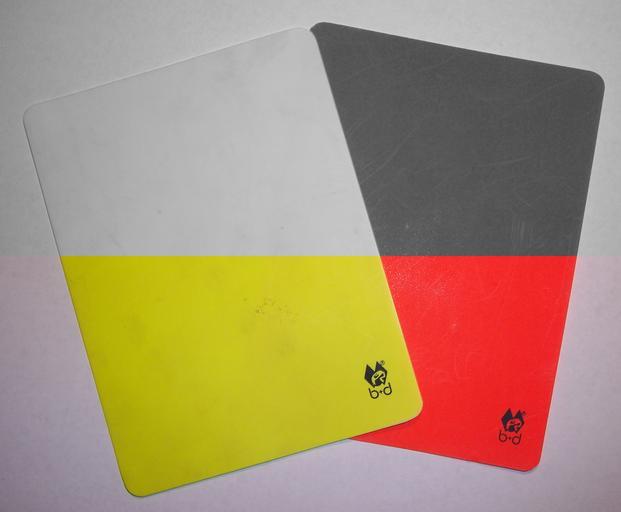 | Keywords: Arschkarte-Etymolgie-Gegenbeispiel.jpg Gelbe und Rote Karte beim Fußball die obere Hälfte des Bilds wurde mit de GIMP entfärbt Dies soll demonstrieren dass die Karten auch in Schwarzweißübertragungen vom Zuschauer unterschieden werden konnten und so eine - von Linguisten als falsch angesehene - Wortherkunft des Worts Arschkarte widerlegen Yellow and red card Soccer upper half discolored with w GIMP Used to provide a counterexample for a rejected urban myth explanation of the German word Arschkarte Rot_und_Gelb_ Fußball -red_and_yellow_card_ Soccer jpg 32 2010-07-04 01 54 UTC Rot_und_Gelb_ Fußball -red_and_yellow_card_ Soccer jpg de Benutzer Christian Spitschka derivative work Asgar Other fields GIMP n + RetouchedPicture Discolored in GIMP used German Version / Entfärben Also the image was slightly cropped asgar Rot_und_Gelb_ Fußball -red_and_yellow_card_ Soccer jpg original upload log This image is a derivative work of the following images 2856x2142 1424540 Bytes <nowiki></nowiki> 2005-08-22T18 14 07Z Andreas -horn- Hornig 1133x949 60356 Bytes <nowiki> Deutsch English Erstellt von de Benutzer Guety selbstgemacht 19 38 7 Okt 2004 de Benutzer Guety de Benutzer Guety </nowiki> Uploaded with derivativeFX Association football cards Red and yellow Straight Four colors High-visibility yellow High-visibility orange Gray and white |