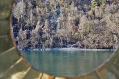 Keywords: art artwork metal modern hole by looking district water river inn trees nature
