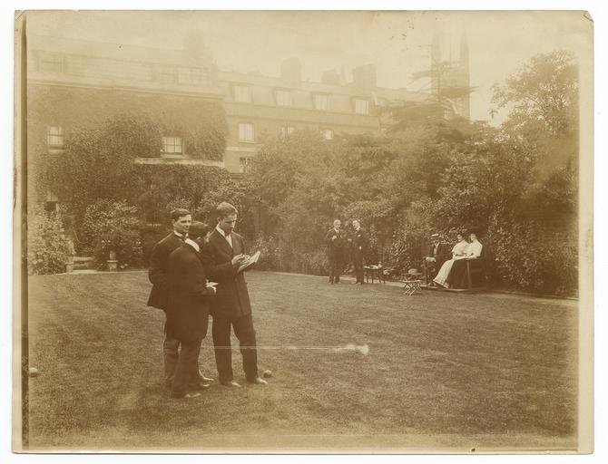 | Keywords: smithsonian institution smithsonianinstitution croquet sepia two men twomen outdoor archives of american art archivesofamericanart monochrome Description: Identification on verso (handwritten): From left to right - Frank Brangwyn, art dealer from Paris, Arthur Covey, Sir Alfred East, McCall, an unknown man, Mrs. Brangwyn, and Mrs. McCall. Covey, Arthur Sinclair, 1877-1960 Brangwyn, Frank, Sir, 1867-1956 Creator/Photographer: Unidentified photographer Medium: Black and white photographic print Dimensions: 17 cm x 22 cm Date: c. 1905 Persistent URL: www.aaa.si.edu/collections/images/detail/arthur-covey-and... Repository: Archives of American Art Collection: Arthur Sinclair Covey papers, 1882-1960 Accession number: aaa_covearth_5016 Description: Identification on verso (handwritten): From left to right - Frank Brangwyn, art dealer from Paris, Arthur Covey, Sir Alfred East, McCall, an unknown man, Mrs. Brangwyn, and Mrs. McCall. Covey, Arthur Sinclair, 1877-1960 Brangwyn, Frank, Sir, 1867-1956 Creator/Photographer: Unidentified photographer Medium: Black and white photographic print Dimensions: 17 cm x 22 cm Date: c. 1905 Persistent URL: www.aaa.si.edu/collections/images/detail/arthur-covey-and... Repository: Archives of American Art Collection: Arthur Sinclair Covey papers, 1882-1960 Accession number: aaa_covearth_5016 |