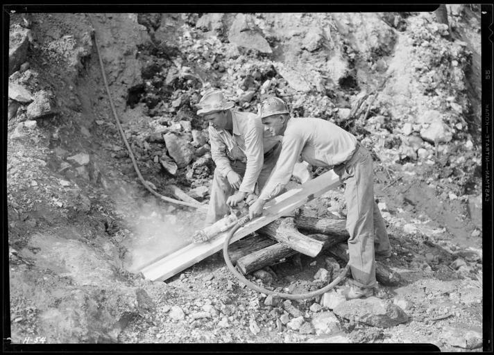 | Keywords: nara:arcid=532677 u.s. national archives usnationalarchives lewis hine lewishine blackandwhite photo border monochrome surreal outdoor texture text black and white Original Caption: Arthur Roberts and Sam Mynatt, drilling for a shot in boulder in roadway at Norris Dam, October 1933 U.S. National Archives’ Local Identifier: 142-H-54 Photographer: Hine, Lewis Subjects: New Deal, 1933-1939 Rural areas Tennessee (United States, North and Central America) state Water projects Persistent URL: research.archives.gov/description/532677 Repository: Still Picture Records Section, Special Media Archives Services Division (NWCS-S), National Archives at College Park, 8601 Adelphi Road, College Park, MD, 20740-6001. For information about ordering reproductions of photographs held by the Still Picture Unit, visit: www.archives.gov/research/order/still-pictures.html Reproductions may be ordered via an independent vendor. NARA maintains a list of vendors at www.archives.gov/research/order/vendors-photos-maps-dc.html Access Restrictions: Unrestricted Use Restrictions: Unrestricted Original Caption: Arthur Roberts and Sam Mynatt, drilling for a shot in boulder in roadway at Norris Dam, October 1933 U.S. National Archives’ Local Identifier: 142-H-54 Photographer: Hine, Lewis Subjects: New Deal, 1933-1939 Rural areas Tennessee (United States, North and Central America) state Water projects Persistent URL: research.archives.gov/description/532677 Repository: Still Picture Records Section, Special Media Archives Services Division (NWCS-S), National Archives at College Park, 8601 Adelphi Road, College Park, MD, 20740-6001. For information about ordering reproductions of photographs held by the Still Picture Unit, visit: www.archives.gov/research/order/still-pictures.html Reproductions may be ordered via an independent vendor. NARA maintains a list of vendors at www.archives.gov/research/order/vendors-photos-maps-dc.html Access Restrictions: Unrestricted Use Restrictions: Unrestricted |