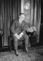 | Keywords: ArthurFieldsSitting.jpg Photoportrait of U S singer and Vaudeville star Arthur Fields Fields wearing a 3-piece suit is sitting on chair in what looks like a home living room a cigarette in his right hand Bain News Service photo via Library of Congress website at http //hdl loc gov/loc pnp/ggbain 27689 Converted from TIFF to jpg and edges cropped before upload Not dated Looks c 1910s Uncredited photographer for Bain News Service PD-Bain Arthur Fields Sitting men 1910s portrait photographs Men smoking cigarettes Black and white photographic portraits of men Males with pince-nez |