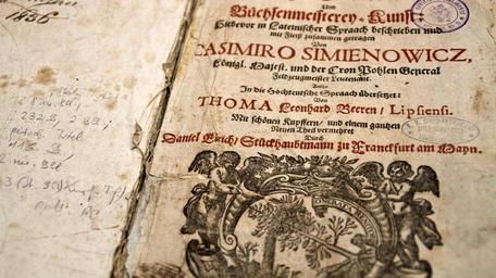 Keywords: Artis Magnae Artilleriae german title.jpg be-tarask Тытульны а куш «Вялікага мастацтва а тыле ыі» Казіме а Семяновіча Casimir Siemienowicz 1676; photo taken on June 11 2013 http //www svaboda org/content/article/25014378 html Casimiro Simienowicz; German translation by Thoma Beeren; photo by Siarhiej Saciuk/BelaPAN PD-old Uploaded with UploadWizard Casimir Siemienowicz 1676 books Books in German