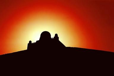 Keywords: artistic sunset red fiery colorful silhouette mausoleum tomb aswan egypt