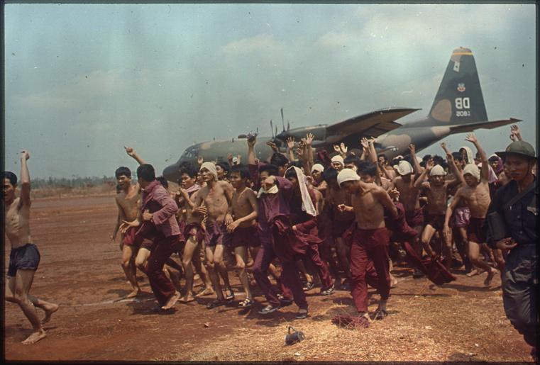 Keywords: ARVN Prisoner of War Repatriation. Prisoners of War shed their prison uniforms and shout political slogans following... - NARA - 530631.tif Scope and content General notes photo is inverted 530631 Local identifier 111-C-CC86901 Department of Defense Department of the Army Office of the Deputy Chief of Staff for Operations U S Army Audiovisual Center ca 1974 - 05/15/1984 Still Picture Records Section Special Media Archives Services Division NWCS-S National Archives at College Park 8601 Adelphi Road College Park MD 20740-6001 1973-03-13 Record group Record Group 111 Records of the Office of the Chief Signal Officer 1860 - 1985 Record group ARC 440 Color Photographs of Signal Corps Activity compiled 1944 - 1981 Series ARC 530606 File unit File unit ARC Variant control numbers NAIL Control Number NWDNS-111-C-CC86901 yes Other versions thumb left jpeg NARA-cooperation PD-USGov United States Army in the Vietnam War Lockheed C-130 Hercules in the Vietnam War Vietnam War in 1973 Prisoner uniforms |