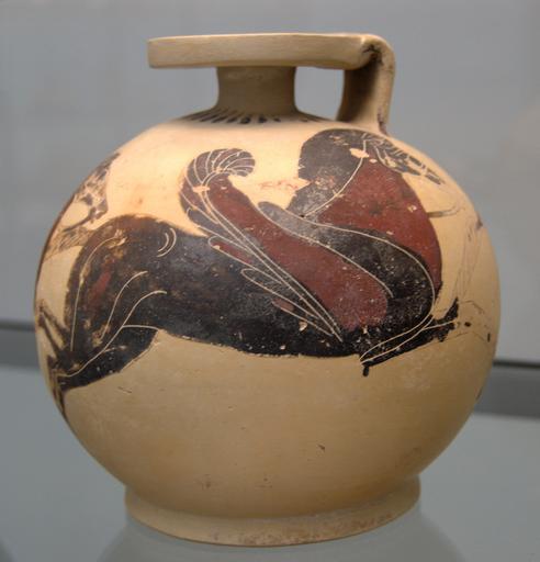 Keywords: Aryballos Pegasos 580 BC Staatliche Antikensammlungen.jpg Aufgezäumte Flügelpferde Pegasos Aryballos um 580 v Chr Winged horse with a support Pegasus Aryballos ca 580 BC Cheval ailé portant une bride Pégase Aryballe v 580 av J -C Museum Staatliche Antikensammlungen Room 1 object history credit line accession number User Bibi Saint-Pol own work 2007-02-09 other versions Pegasus in ancient Greek pottery Ancient Greek pottery aryballoi Black-figure pottery in the Staatliche Antikensammlungen Staatliche Antikensammlungen - Room 1 580s BC pottery Corinthian black-figure pottery |