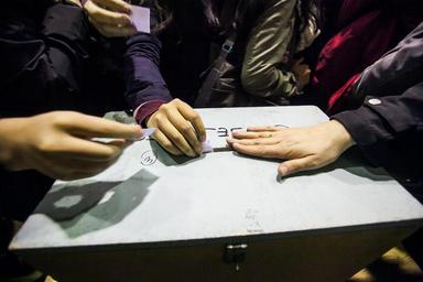 Keywords: indoor Este proceso se realizó en el contexto de una asamblea general a la que llamó la Mesa Ejecutiva de la Federación de Estudiantes de la UMAG (FEUM) y contó con una masiva asistencia de alumnos, quienes reunidos en el Gimnasio del campus central, emitieron su preferencia a favor o en contra de sumarse a esta movilización a la que ya se ha plegado más de una decena de universidades a lo largo del país. Este proceso se realizó en el contexto de una asamblea general a la que llamó la Mesa Ejecutiva de la Federación de Estudiantes de la UMAG (FEUM) y contó con una masiva asistencia de alumnos, quienes reunidos en el Gimnasio del campus central, emitieron su preferencia a favor o en contra de sumarse a esta movilización a la que ya se ha plegado más de una decena de universidades a lo largo del país.