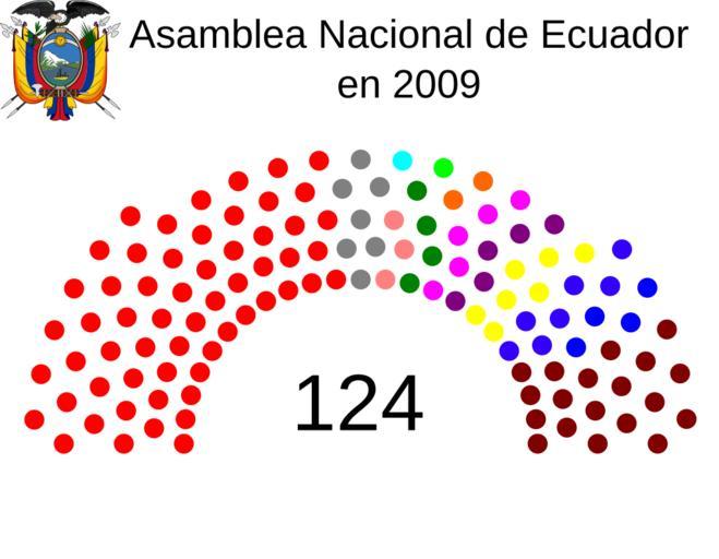 | Keywords: Asamblea Nacional de Ecuador 2009.svg Diagram of the National Assembly of Ecuador 2009 Diagrama de la Asamblea Nacional de Ecuador de 2009 FF0000 es Alianza PAIS 59 miembros 960018 es Partido Sociedad Patriótica 21 de Enero 19 miembros 0000FF Partido Social Cristiano/Movimiento Cívico Madera de Guerrero 11 miembros FFFF00 es Partido Renovador Institucional Acción Nacional 7 miembros 808080 Independientes 7 miembros 9400D3 es Movimiento Popular Democrático 5 miembros FF007F Movimiento Municipalista por la Integridad Nacional 5 miembros 008000 es Pachakutik 4 miembros FFC0CB es Partido Roldosista Ecuatoriano 3 miembros FF7F00 Izquierda Democrática 2 miembros 00FF00 es Partido Socialista-Frente Amplio 1 miembros 00FFFF Movimiento Concertación Nacional Democrática 1 miembros self-made using this Image Parlamento_blank_1114_v4 0 svg 2009-10-01 Luis Politics of Ecuador Election apportionment diagrams of Ecuador 2009 in Ecuador Asamblea Nacional de Ecuador |
