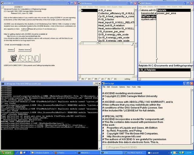 Keywords: Ascend0.9.7 flat plate collector.JPG en This file is a screen-shot of a model in ASCEND0 9 7 own J saipratap Screenshots with English