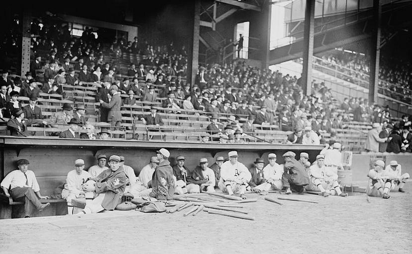 | Keywords: AsDugout1914SeriesGame1.jpg en Philadelphia A's in dugout before Game 1 of 1914 World Series Shibe Park Phila PA Cropped http //lcweb2 loc gov/service/pnp/ggbain/17500/17523v jpg Bain News Service 1914-10-09 PD-Bain LOC-image ggbain 17523 Cropped Shibe Park 1914 World Series Philadelphia in the 1910s |