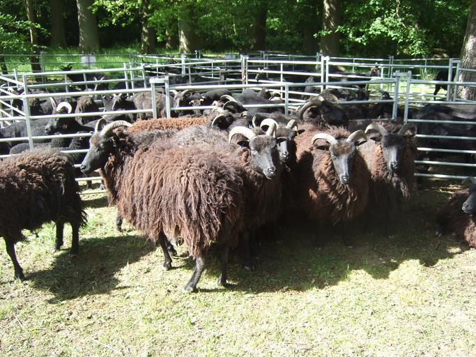 Keywords: Ashdown Forest Hebridean flock.jpg en Ashdown Forest's Hebridean sheep flock awaiting shearing at the Ashdown Forest Centre own Dartford Warbler 2009-05-29 Hebridean sheep Sheep in East Sussex Ashdown Forest