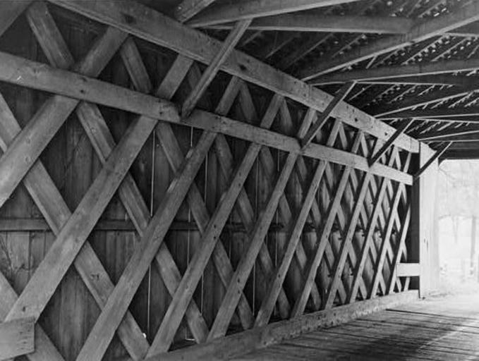 | Keywords: Ashland Covered Bridge, Lattice-Work, Red Clay Creek-Barley Mill Road, Ashland (New Castle County, Delaware).jpg 73000506 Historic American Building Survey ”HABS archives 1958; cropped http //memory loc gov/cgi-bin/displayPhoto pl path /pnp/habshaer/de/de0000/de0041/photos topImages 032492pr jpg topLinks 032492pv jpg 032492pu tif title 3 20 20Historic 20American 20Buildings 20Survey 20Earl 20Brooks 20Photographer 201958 20INTERIOR 20- 20EAST 20LATTICE 20TRUSS 20 20 3cbr 3eHABS 20DEL 2-YORK V 1-3 displayProfile 0 Earl Brooks Photographer 1958 DEL 2-YORK V 1-3 Historic American Buildings Survey of Delaware Black and white photographs of Delaware Ashland Covered Bridge |