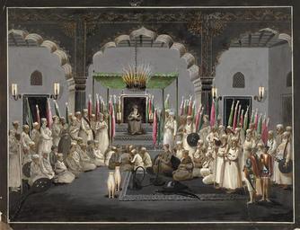 MAKE A MEME View Large Image Asif muharram 1795 1.jpg Watercolour of the Muharram Festival part of the Hyde collection by an unknown artist working in the Murshidabad style c 1795 Inscribed on the back in pencil 'The Nubob of Moorshedd - at Prayers'; in ink 'The Nawaub ...