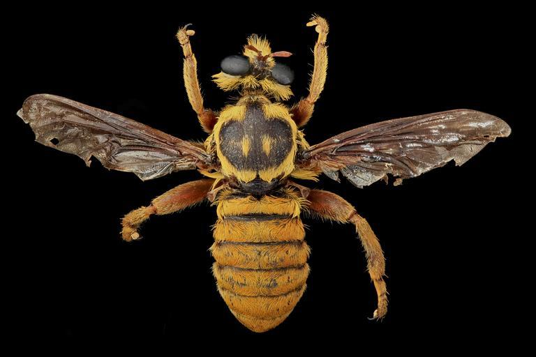 | Keywords: bug bugs fly flies animal animals animalia arthropod arthropods arthropoda insect insects insecta diptera orthorrhapha brachycera asiloidea robber fly robberfly robber flies robberflies asilidae zerene stacker zerenestacker biml usgs droege macro georgia taxonomy:binomial=laphria saffrana taxonomy:binomial=laphriasaffrana laphria usfs stackshot usgsbiml black background surreal Laphria saffrana, a fly, a robberfly to be exact, but a lovely mimic of Yellowjackets. Collected at Hitchiti Experimental Forest, Georgia, in Glycol trap Laphria saffrana, a fly, a robberfly to be exact, but a lovely mimic of Yellowjackets. Collected at Hitchiti Experimental Forest, Georgia, in Glycol trap |