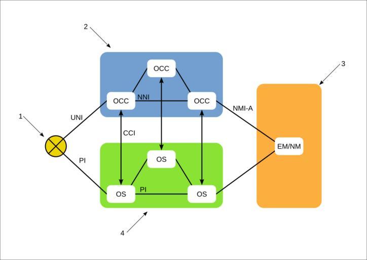 | Keywords: ASON Logical Structure.svg en Automatically Switched Optical Network ASON logical structure 1 Client Device AP Router ATM Switch 2 Control plane 3 Management plane 4 Transport plane OCC - Optical Connection Controller OS - Optical Switch UNI - User to Network Interface NNI - Network to Network Interface NMI-A - Network Management Interface for ASON Control Plane CCI - Connection Control Interface PI - Physical Interface pl Schemat logiczny sieci ASON 1 Urządzenie klienta Router AP Switch ATM 2 Płaszczyzna Kontrolna 3 Płaszczyzna Zarządzania 4 Płaszczyzna transportowa OCC - Kontroler łącza optycznego OS - Switch optyczny UNI - Interfejs Użytkownik - Sieć NNI - Interfejs Sieć - Sieć NMI-A - Interfejs zarządzania siecią dla płaszczyzny kontrolnej CCI - Interfejs kontroli połączeń PI - Interfejs fizyczny Praca własna na podstawie pliku załadowanego przez pl wikipedysta Craven User Harkonnen2 30 10 2009 oryginał 27 01 2008 WPGW vector image Network diagrams |