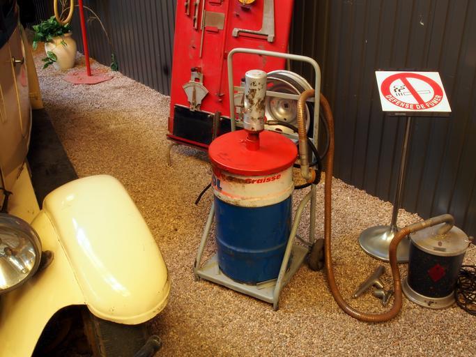 Keywords: Aspiron vacuum cleaner & grease drum.jpg Aspiron Vacuum cleaner grease drum own 2012-08-13 15 31 24 AlfvanBeem CC-zero Musée Automobile Reims Champagne Classic vehicle photographs by Alf van Beem Nostalgia by Alf van Beem