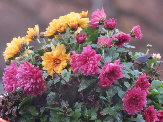 Keywords: aster winter aster rainy weather wet pink flower blossom bloom blumenstock yellow