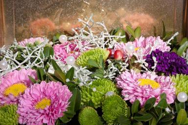 Keywords: asters autumn arrangement decoration autumn flowers violet pink green floral decorations autumn decoration