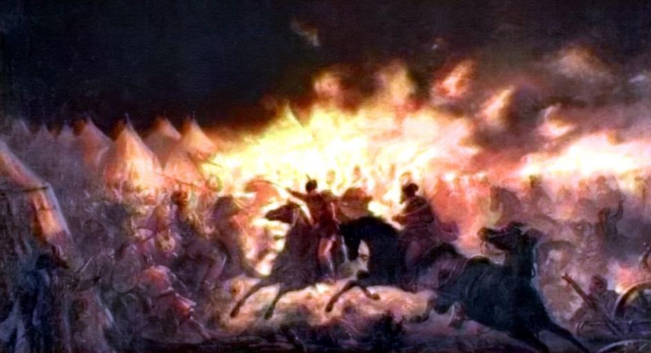 | Keywords: AtaculdeNoapte.jpg Artwork Creator Theodor Aman The Battle With Torches لوحة المعركة بالمشاعل ، المناوشة الليلية بين الجيش العثماني والفلاخي، بريشة ثيودور آمان Vlads nächtlicher Angriff auf das türkische Hauptlager; Gemälde von Theodor Aman 19 Jahrhundert The Battle With Torches by w Romanian painter Theodor Aman It depicts the The Night Attack of Târgovişte a skirmish fought between forces of Vlad III the Impaler of Wallachia and Mehmed II of the Ottoman Empire on Thursday June 17 1462 17 juin Vlad l Empaleur attaque le camp turc par surprise dans la nuit toile de Theodor Aman La battaglia con le torce13 - Theodor Aman 1831-1891 Vlad l'Impalatore assalta il campo del sultano Maometto II v Attacco Notturno オスマン 国とヴラド公の闘い(19世 テオドール・アマン画) Nakts kauja Teodora Amana glezna Bătălia cu facle de Theodor Aman Pictura descrie Atacul de noapte o bătălie între o armată condusă de Vlad Țepeș domnul Țării Românești și o armată condusă de sultanul Mehmed al II-lea al Imperiului Otoman desfășurată în apropierea cetății de scaun a Țării Românești Târgoviște în noaptea de 17 iunie 1462 1831-1891 accession number object history credit line romanian wp PD-old-100 Theodor Aman 1460s battles Paintings of Ottoman battles Paintings of battles Night in art Torches in art 19th-century paintings of cavalry in battle Cavalry of the Islamic World Vlad III the Impaler in paintings Romania in the 15th century Battles involving Wallachia Târgoviște 1462 in military history 17 June Ottoman Empire in the 15th century |