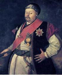 | Keywords: Ataman D.M. Martynov.jpg   еизвестный художник По т ет наказного атамана Донского войска Д   а тынова 1790 Д   а тынов  наказной атаман Войска Донского В 1772 году за участие в пе вой Ту ецкой войне будучи полковником наг ажден именной золотой медалью в 30 че вонцев для ношена на шее В 1796 году  кавале о дена Анны и гене ал-лейтенант  а по т ете  а тынов п едставлен в казачьей одежде с ук ашенной алмазами золотой медалью с п офилем Екате ины II и с о денами Анны I степени и Владими а 2 степени п и этом о дена п иписаны позднее Обыкновение добавлять на исполненных  анее по т етах вновь полученные о дена было очень  асп ост анено в 18 веке http //www warstar info/glinka_russky_army_kostjum/albom_glinka_1 html 1790 18 PD-old-100 Portrait paintings of Cossacks Files uploaded by Shakko from various sources Don Cossack People |