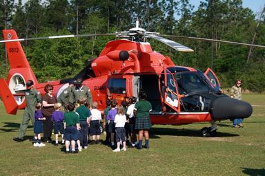 | Keywords: ATC SAR demo DVIDS1091075.jpg en An HH-65 Dolphin rescue helicopter crew from Coast Guard Aviation Training Center Mobile Ala gave an informal presentation and performed a search and rescue demonstration for the students at Collier Elementary School on Friday April 24 2009 Collier Elementary was visited by the Coast Guard to correspond with the school's recent study of Coast Guard operations The kindergarten students have been learning about the importance of the Coast Guard and will be developing their reading skills by drafting stories about the search and rescue demonstration U S Coast Guard photo 2009-04-24 https //www dvidshub net/image/1091075 1091075 2013-12-12 01 14 US PD-USGov Eurocopter HH-65/MH-65 Dolphin Images from DoD uploaded by Fæ |