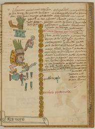 | Keywords: Atemoztli, the 16th Month of the Aztec Solar Calendar WDL6741.png Artwork ru Това Хуан де около 1546 г около 1626 г fr Tovar Jean de 1546-1626 env en Tovar Juan de circa 1546-circa 1626 zh 胡安·德·托瓦尔,约 1546 年 - 约 1626 年 pt Tovar Juan de por volta de 1546-por volta de 1626 ar خوان دو توفار، حوالي 1546-حوالي 1626 es Tovar Juan de circa 1546-circa 1626 ru Атемостли 16-й месяц солнечного календа я ацтеков fr Atemoztli seizième mois du calendrier solaire aztèque en Atemoztli the 16th Month of the Aztec Solar Calendar zh 阿兹特克太阳历的第 16 个 降水 pt Atemoztli o 16º mês do calendário solar asteca ar أتيموستلي، الشهر السادس عشر من التقويم الشمسي الأزتكي ru Кодекс Това а авто ом кото ого считается мексиканский иезуит XVI века Хуан де Това соде жит под обную инфо мацию об об ядах и це емониях ацтеков известных также как мешика Кодекс п оиллюст и ован 51 аква ельным исунком на полную ст аницу Рисунки в кото ых наблюдается значительное влияние пиктог афических укописей доколониальных в емен обладают исключительными художественными достоинствами Рукопись состоит из т ех азделов В пе вом азделе описана исто ия путешествий ацтеков до п ибытия испанцев Вто ой аздел п едставляет собой иллюст и ованную исто ию ацтеков В т етьем азделе находится календа ь Това а в кото ом п ослеживается календа ный цикл ацтеков с месяцами неделями днями воск есными буквами и елигиозными п аздниками х истианского 365-дневного года а этой иллюст ации из т етьего аздела изоб ажена голова в п офиль в головном убо е из зеленых пе ьев сама фигу а де жит голубой посох в виде змеи и сосуд с льющейся из него водой ад головой есть еще одна женская голова с к углым медальоном на лбу ад этой головой ука с пучком т авы над чем-то квад атным Текст описывает об яд почитания Тлалока бога дождя кото ый появляется с лицом своей мате и и пучком зеленой т авы на ступенях алта я чтобы показать что его ука да ит земле зелень с помощью дождей Этот месяц оп еделяемый по дню апостола Фомы называется атемостли нисхождение вод есяц был посвящен Тлалоку Обычным ат ибутом Тлалока является <em>couatopilli</em> посох в виде змеи Головной убо тот же что и в месяце тепеиуитль Богиню озе и учьев Чальчиутликуэ еф итовая юбка называемую то мате ью то женой то сест ой Тлалока можно узнать по <em>chalchiuitl</em> зеленому неф иту над ее головой <br>Календа ь ацтеков; Боги ацтеков; Ацтеки; Календа и; Кодекс; Индейцы ексики; Ко енные на одности; езоаме ика; Кодекс Това а fr Le codex Tovar attribué à Jean de Tovar jésuite mexicain du XVI<sup>e</sup> siècle contient des informations détaillées sur les rites et les cérémonies des Aztèques également connus sous le nom de Mexicas Il est illustré de 51 aquarelles de la taille d'une page Fortement influencées par les manuscrits pictographiques de la période précontact ces peintures sont d'une qualité artistique exceptionnelle Le manuscrit est divisé en trois sections La première section contient une histoire des voyages des Aztèques avant l'arrivée des Espagnols La deuxième section est une histoire illustrée des Aztèques Dans la troisième section le calendrier de Tovar transcrit un calendrier aztèque continu avec les mois les semaines les jours les lettres dominicales et les fêtes liturgiques d'une année chrétienne de 365 jours Cette illustration extraite de la troisième section montre le profil d'une tête portant une coiffe de plumes vertes ainsi que des bras tenant un bâton bleu en forme de serpent et un récipient déversant de l'eau Au-dessus une autre tête celle d'une femme est représentée avec un médaillon au-dessus du front Enfin dans la partie supérieure l'image inclut également une main tenant une botte d'herbe au-dessus d'une forme carrée Le texte décrit la célébration de Tlaloc dieu de la pluie Il précise également que ce dieu est représenté avec le visage de sa mère et une botte d'herbe sur une marche d'autel pour indiquer que de cette main il donne la verdure à la terre grâce à ses pluies Ce mois assimilé à celui de l'apôtre Thomas est appelé Atemoztli descente de l'eau Il était dédié à Tlaloc Le <em>couatopilli</em> bâton en forme de serpent est un attribut commun de Tlaloc La coiffe est la même que celle représentée pour le mois de Tepeilhuitl Le <em>chalchiuitl</em> jade vert au-dessus de sa tête représente Chalchiuhtlicue Jupe de jade déesse des lacs et des cours d'eau et tour 