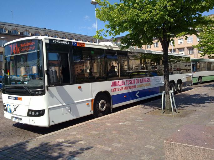 | Keywords: Atheist Bus Campaign in Helsinki 1.jpg en One of the atheist adverts on the side of bus in Helsinki Finland The ads were paid by Finnish atheist organizations Vapaa-ajattelijain liitto and Humanistiliitto and the campaign started June 22 2009 and it ended July 5 2009 Volvo 8700 bus 611 with Volvo B12BLE 6x2 chassis Built 2007 Concordia Bus Finland from Espoo operator mainoskampanja Helsingissä Kampanja alkoi 22 6 2009 ja se kesti 5 7 2009 asti Own Peltimikko 2009-06-25 Atheist Bus Campaign in Finland Volvo 8700LE on Volvo B12BLE Volvo buses in Finland Buses in Helsinki Buses in Finland built in 2007 Buses in Finland photographed in 2009 Advertisements on buses in Finland Concordia Bus Finland Full-size buses in Finland Low-floor buses in Finland Tri-axle buses in Finland White buses |