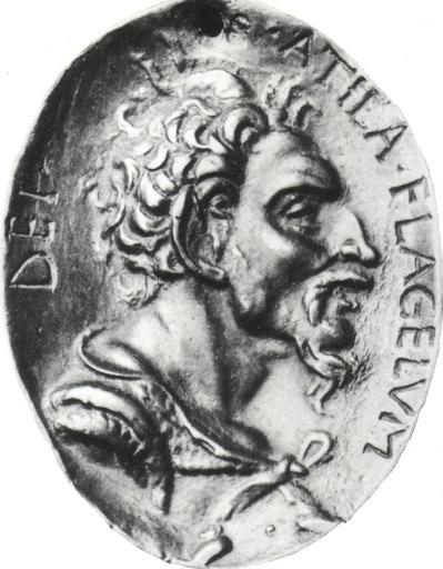 Keywords: Atilla fléau de dieu.jpg Attila Bronze medal after an antique original Attila fléau de Dieu Plaquette en bronze du XVe siècle 2000 H 4 5 cm; W 3 5 cm Museum Louvre Department of Decorative arts Richelieu 1st floor room 13 case 1 object history credit line Gift of G Dreyfus 1876 accession number OA 2432 _ other versions PD-old Attila the Hun Decorative arts in the Louvre Plaquettes |