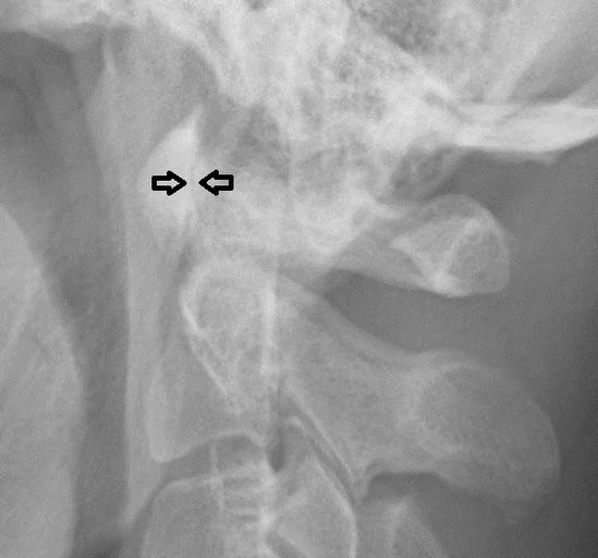 Keywords: Atlanto-dental joint.jpg atlanto-dental joint on projectional radiography 2016-12-15 File Cervical Xray Lateral View jpg Stillwaterising derivative by Mikael Häggström other versions cc-zero Neck x-ray