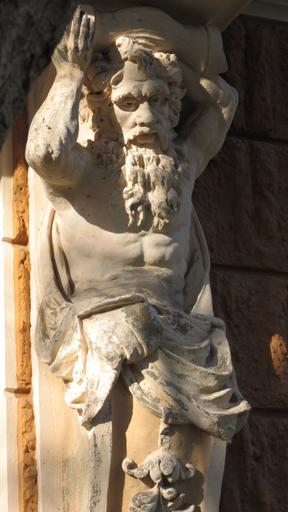 Keywords: atlas facade stone figure historically bear secure hard strength strong muscles old stucco sculpture fig