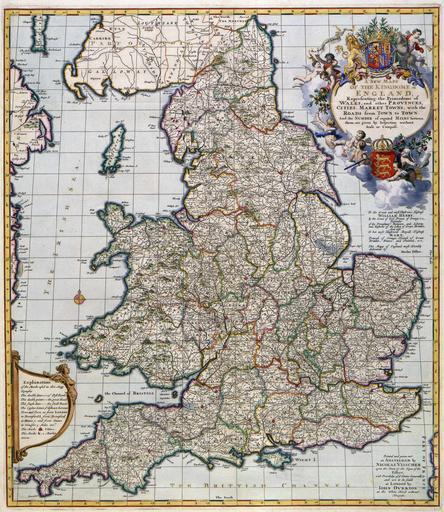 Keywords: Atlas Van der Hagen-KW1049B11 004-A NEW MAP OF THE KINGDOME of ENGLAND, Representing the Princedome of WALES, and other PROVINCES, CITIES, MARKET TOWNS, with the ROADS from TOWN to TOWN.jpeg of the Atlas Van der Hagen in the catalogue of the KB http //opc4 kb nl/DB 1/TTL 1/LNG EN/PPN PPN 353012750 Publisher Creator Nicolaes_Visscher_II Publisher Creator Nicolaes_Visscher_II credit line ca 1685 Deze kaart was een gezamenlijke uitgave van Nicolaes Visscher II 1649-1702 en de Londense uitgever John Overton 1640-1713 De kaart was oorspronkelijk opgedragen aan de Engelse koning James II die regeerde tussen 1685 en 1688 Na de troonsbestijging van stadhouder Willem III en Mary Stuart tot koning en koningin van Engeland in april 1689 veranderde Visscher de oorspronkelijke opdracht en verving hij haar door een opgedracht aan het nieuwe koningspaar ; De kaart is door Nicolaes Visscher II opgedragen aan Willem III en Mary Stuart This map was the result of a collective publication by the Amsterdam publisher Nicolaes Visscher II 1649-1702 and the London publisher John Overton 1640-1713 The map was originally dedicated to the English king James II who reigned between 1685 and 1688 After the ascention to the English throne of stadholder William III and Mary Stuart in April 1689 Visscher changed the original dedication and replaced it by a dedication to the new King and Queen 57 x 50 cm exhibition history Institution Koninklijke Bibliotheek kopergravure Technique copper engraving KW1049B11_004 - Volume 1 Nicolaes Visscher II - John Overton - Willem III - James II van Engeland - Stuart Mary Information field Depicted locations England object history object type Kaart Map PD-old-100 place of creation place of discovery Source page at the http //resolver kb nl/resolve urn urn gvn KONB01 117 Geheugen van Nederland / Memory of the Netherlands website Koninklijke Bibliotheek A NEW MAP OF THE KINGDOME of ENGLAND Representing the Princedome of WALES and other PROVINCES CITIES MARKET TOWNS with the ROADS from TOWN to TOWN Uploaded with GWToolset Atlas Van der Hagen-KW1049B11_004-A NEW MAP OF THE KINGDOME of ENGLAND Representing the Princedome of WALES and other PROVINCES CITIES MARKET TOWNS with the ROADS from TOWN to TOWN http //resolver kb nl/resolve urn urn gvn KONB01 1049B11_004 size large Atlas van der Hagen |