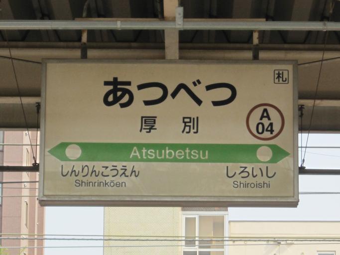 Keywords: Atsubetsu Sta Signs.jpg ja 北海道旅客鉄道函館 線厚別駅駅名標 2012-05-21 own Ninosan cc-zero Uploaded with UploadWizard Atsubetsu Station