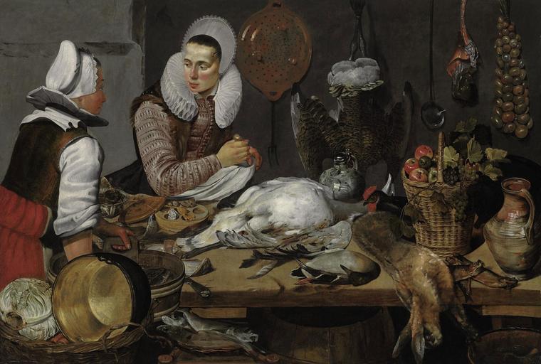 | Keywords: Attributed to Frans Hals, 1625-1630, A Kitchen Interior with a Maid and a Lady Preparing Game.jpg Attributed to Attributed to Frans Hals in collaboration with another artist 1600 1600 - 1620 oil canvas cm 114 167 accession number object history credit line exhibition history 233425 christies online 5403358 2415 27 New York 26 January 2011 PD-old-100 School of Frans Hals Kitchen interiors in Dutch genre paintings Mistress and maid in art | ||||