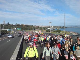 | Keywords: Auckland Harbour Bridge Protest 02.jpg Protesters for a walk- and cycleway across the Auckland Harbour Bridge between Auckland City and North Shore City in New Zealand shown snaking their way onto the bridge A long tail of people can be seen in the distance making their way onto the Curran Street on-ramp The protesters swarmed onto the bridge after several individuals made their way around police barriers and walked / cycled onto the motorway upon which the whole northbound traffic was stopped by police and highway workers in turn animating the rest of the crowd to join them on the now-closed lanes with police deciding to abandon the attempt to turn them back self-photographed 2009-05-24 Uploader -36 8347666 174 7427952 Photos taken by Ingolfson Crowds in New Zealand Protest for a walk- and cycleway across Auckland Harbour Bridge 2009 People of Auckland Street lights in New Zealand |