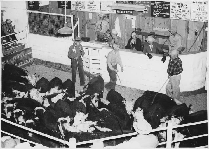 | Keywords: Auction of calves at Chamberllain Sales Ring. Chamberlain, South Dakota. - NARA - 285301.jpg Scope and content Near the Crow Creek Reservation General notes 285301 Local identifier Department of the Interior Bureau of Indian Affairs Aberdeen Area Office Crow Creek Agency 1949 - 1954 NARA's Central Plains Region Kansas City NREA 400 West Pershing Road Kansas City MO 64108 other date ~ 1950 Record group Record Group 75 Records of the Bureau of Indian Affairs 1793 - 1999 Record group ARC 404 Crow Creek Agency Photographs compiled 1900 - 1960 Series ARC 285298 File unit File unit ARC Variant control numbers NAIL Control Number NRE-75-CRCR PHO -610 Other versions <gallery> File Auction_of_calves_at_Chamberllain_Sales_Ring _Chamberlain _South_Dakota _-_NARA_-_285301 tif tif File Auction_of_calves_at_Chamberllain_Sales_Ring _Chamberlain _South_Dakota _-_NARA_-_285301 jpg jpg </gallery> NARA-cooperation PD-USGov Crow Creek Agency Auctioneers Calves Cattle markets Auctions Chamberlain South Dakota Crow Creek South Dakota in the 1950s NARA images of South Dakota Crow Creek Black and white photographs of South Dakota Crow Creek |