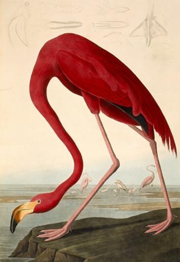 Keywords: Audubon-Flamingo.jpg 1827 1838 Phoenicopterus ruber the Greater Flamingo Drawn by John James Audubon for his book The Birds of America Audubon's Birds of America PD-old-100 The Birds of America Flamingos in art Phoenicopterus ruber anatomy
