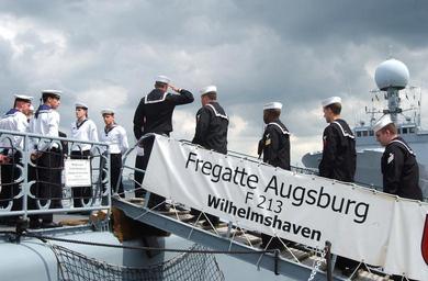 Keywords: Augsburg 020621-N-0872M-501.jpg en Sailors from the guided missile cruisers USS Cape St George CG 71 and USS Anzio CG 68 visit with sailors from the German Frigate Augsburg F 213 to watch the World Cup soccer match between their two respective countries Both ships are in Kiel Germany for a port visit at the conclusion of BALTOPS 2002 The United States and 11 other nations are participating in this year's exercise BALTOPS 2002 is intended to improve interoperability between allies and Partnership for Peace countries by conducting a peace support operation at sea including exercises in gunnery replenishment-at-sea undersea warfare radar tracking mine countermeasures seamanship search and rescue maritime interdiction operations and scenarios dealing with potentially real world crises http //www navy mil/view_image asp id 1758 U S Navy photo by Photographer's Mate 1st Class Martin E Maddock 2002-06-21 PD PD-USGov-Military-Navy BALTOPS 2002 Bundeswehr in 2002 June 2002 photographs F213 Augsburg ship 1989 People of the Deutsche Marine Ceremonies of the Deutsche Marine Salutes |