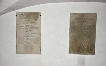 Keywords: Augsburg Dom Krypta Epitaphe.jpg Augsburg Dom Epitaphe in der Krypta own 2015-11 UliE1350 cc-0 Crypt of Augsburg Cathedral Wall mounted church monuments of Augsburg Cathedral Reliefs of coats of arms in Augsburg
