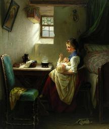 | Keywords: August Müller Interieur mit Mutter und Kind.jpg August Müller 1836 “1885 other date century 19 Oil on canvas cm 34 28 Institution unknown http //www hampel-auctions com/ other versions PD-old-100 August Müller 19th-century paintings location missing 19th-century paintings not categorised by year 19th-century bedrooms in art Images from Hampel Auctions Mothers in art Paintings of babies | ||||