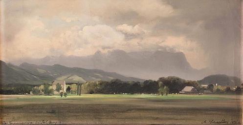 MAKE A MEME View Large Image August Schaeffer Blick von Glasenbach bei Salzburg zum Tennengebirge.jpg Blick von Glasenbach bei Salzburg zum Tennengebirge A Schaeffer 1871 signature/date lower right Das Tennengebirge bei Salzburg title left oil on canvas ca 21 x 38 cm ...