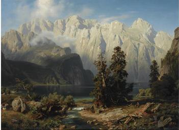 | Keywords: August Wilhelm Leu - Gebirgslandschaft.jpg August Wilhelm Leu 1819-1897 date oil canvas cm 110 148 accession number object history credit line exhibition history http //www sothebys com/en/auctions/ecatalogue/2008/property-from-royal-and-noble-families-am1060/lot 131 html Sotheby's Amsterdam 17 December 2008 lot 131 PD-old-100 August Wilhelm Leu 19th-century landscape paintings 19th-century mountain paintings Images from Sotheby's | ||||