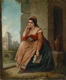 Keywords: Augusto Tominz - The Letter, 1873.jpg attributed to 1873 oil on canvas cm 62 52 object history exhibition history credit line signed bottom right TOMINZ 1873 accession number http //www dorotheum com Dorotheum PD-old-auto-1923 1883 Augusto Tominz Images from Dorotheum 1873 portrait paintings 1873 oil on canvas paintings 19th-century oil paintings of sitting women at full length Female with shoes Females looking at viewer in art Jugs in art Paintings with years of production artist Portraits with letters Waiting people on art