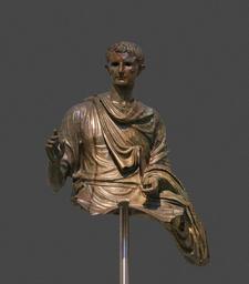 | Keywords: Augustus Bronze X23322 NAMAthens.jpg en Statue of the emperor Augustus 29BC - AD 14 Bronze Found in the Aegean sea between the islands of Euboea and Agios Efstratios The emperor is depicted in mature age mounting a horse He wears a tunica decorated with a meander pattern Iconographic features of the Prima Porta gesture of official greeting The hilt of his sword can be seen below the left hand in which he held the horse's reigns On the bezel of his finger-ring a staff of divination lituus is engraved symbolizing the supreme religious office of Pontifex Maximus assumed by Augustus in 12 BC 12-10 BC el Άγαλμα του αυτοκράτορα Οκταβιανού Αυγούστου 29 Χ - 14 μ Χ Χαλκός Βρέθηκε στο Αιγαίο μεταξύ των νησιών Εύβοιας και Αγίου Ευστρατίου Ο αυτοκράτορας α εικονίζεται έφι ος σε ροχωρημένη ηλικία Φορεί χιτώνα tunica με κατακόρυφη ορφυρή ταινία clavus purpurea και χλαμύδα palydamntum με κροσσωτή α όληξη και διακόσμηση με μαίανδρο Συνδυάζει εικονογραφικά στοιχεία των τύ ων Prima Porta και Ακτίου Το δεξί χέρι υψώνεται σε χειρονομία ε ίσημου χαιρετισμού Κάτω α ό το αριστερό με το ο οίο κρατούσε τα ηνία του αλόγου διακρίνεται η λαβή ξίφους Στη σφενδόνη του δαχτυλιδίου του διακρίνεται αγχάρακτο το ραβδί οιωνισκό ου lituus σύμβολο του αξιώματος του Pontifex Maximus ανώτατης ιερατικής εξουσίας την ο οία ο Αύγουστος έλαβε το 12 Χ 12-10 Χ fr Statue de l'empereur Auguste 29BC - 14AD Bronze Trouvée dans la mer Egée entre les îles d'Eubée et d'Agios Efstratios L'empereur est dépeint d'âge mur à cheval Il porte une tunique décorée d'un motif de méandres Il adopte la pose du salut officiel Une poignée d'épée est visible sous sa main gauche dans laquelle il tient les rênes de son cheval Autour de son doigt il y a un anneau de divination lituus gravé symbolisant l'office religieux suprême de Pontifex Maximus assumé par Auguste en 12 av institution National Archaeological Museum of Athens inv X23322 2015-10-28 14 14 01 own Jebulon other versions Assessments 1 QualityImage Bronze statue of the emperor Augustus NAMA X 23322 Athens Greece 06 29 12 February 2016 UTC Augustus Bronze X23322 NAMAthens jpg cc-zero Bronze statue of the emperor Augustus NAMA X 23322 Gray background Quality images by Jebulon Featured pictures of art Featured pictures of Athens Featured pictures by Jebulon Valued images by Jebulon Valued images of Athens Quality images of Athens Featured pictures of people |