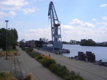| Keywords: Ausruestungshafen.JPG en View of the Ausruestungshafen a part of the inner harbour of Wilhelmshaven The picture shows in the foreground two decommissioned type 206 submarines of the German Navy U 26 U 28 and the floating crane Griep of the Wilhelmshaven naval shipyard Behind the crane a reserve door for the Wilhelmshaven lock is berthed In the background some merchant ships are laid up and anchored due to the economical crisis de Blick über den Ausrüstungshafen einen Teil des Wilhelmshavener Innenhafens Im Vordergrund zwei außer Dienst gestellte Uboote der Klasse 206 U 26 U 28 und der Schwimmkran Griep des Marinearsenals Hinter dem Kran liegt ein Reserveschleusentor der 4 Einfahrt an der Pier Im Hintergrund einige wegen der Wirtschaftskrise aufgelegte Handelsschiffe vor Anker Own KuK 2009-07-06 PD Ausrüstungshafen Wilhelmshaven Innenhafen Wilhelmshaven Y876 Griep ship 1963 Type 206 submarine Port cranes in Lower Saxony Submarines in Wilhelmshaven Bundeswehr in 2009 |