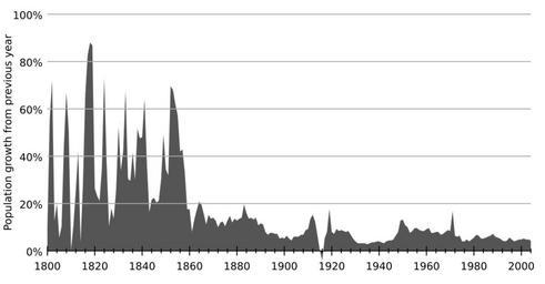| Keywords: Australia percentage population growth.svg  Australia's population growth in year-on-year percentage terms Own 2007-06-16 El T Demography Original data Based on the following data Year Growth rate 1800 2 5 1801 14 0 1802 18 0 1803 3 2 1804 5 0 1805 1 4 1806 2 6 1807 11 2 1808 16 7 1809 12 6 1810 0 1 1811 2 7 1812 6 4 1813 10 5 1814 0 9 1815 6 9 1816 16 5 1817 20 7 1818 22 0 1819 21 7 1820 6 6 1821 5 8 1822 5 3 1823 8 7 1824 18 3 1825 9 2 1826 2 6 1827 4 5 1828 3 4 1829 6 4 1830 13 1 1831 8 5 1832 10 5 1833 16 9 1834 7 6 1835 7 4 1836 10 4 1837 7 5 1838 12 9 1839 11 9 1840 12 0 1841 16 0 1842 9 1 1843 4 1 1844 5 4 1845 5 6 1846 5 1 1847 5 3 1848 7 6 1849 12 3 1850 8 6 1851 8 0 1852 17 4 1853 17 0 1854 15 5 1855 14 3 1856 10 5 1857 10 7 1858 8 3 1859 4 4 1860 4 4 1861 2 0 1862 3 3 1863 4 3 1864 5 2 1865 4 9 1866 3 9 1867 2 8 1868 3 8 1869 3 4 1870 3 5 1871 3 2 1872 2 5 1873 3 0 1874 3 1 1875 2 6 1876 3 2 1877 3 7 1878 3 0 1879 3 4 1880 3 2 1881 3 4 1882 3 5 1883 4 9 1884 4 0 1885 3 4 1886 3 5 1887 3 3 1888 3 5 1889 2 7 1890 2 9 1891 2 8 1892 2 0 1893 1 7 1894 1 9 1895 1 9 1896 1 8 1897 1 8 1898 1 3 1899 1 4 1900 1 3 1901 1 6 1902 1 3 1903 1 1 1904 1 5 1905 1 5 1906 1 5 1907 1 7 1908 1 7 1909 2 2 1910 2 3 1911 3 4 1912 3 8 1913 3 1 1914 1 6 1915 0 0 1916 -1 0 1917 1 3 1918 2 0 1919 4 4 1920 2 0 1921 1 8 1922 2 3 1923 2 1 1924 2 2 1925 2 1 1926 2 0 1927 2 1 1928 1 7 1929 1 3 1930 1 0 1931 0 8 1932 0 8 1933 0 8 1934 0 8 1935 0 7 1936 0 8 1937 0 9 1938 0 9 1939 1 0 1940 1 0 1941 0 9 1942 0 8 1943 1 0 1944 1 1 1945 1 1 1946 1 2 1947 1 6 1948 2 0 1949 3 2 1950 3 3 1951 2 7 1952 2 5 1953 1 9 1954 2 1 1955 2 4 1956 2 4 1957 2 2 1958 2 1 1959 2 1 1960 2 3 1961 2 4 1962 1 9 1963 1 9 1964 2 0 1965 2 0 1966 1 7 1967 1 8 1968 2 0 1969 2 2 1970 2 1 1971 4 2 1972 1 6 1973 1 5 1974 1 6 1975 1 0 1976 1 0 1977 1 2 1978 1 0 1979 1 2 1980 1 4 1981 1 7 1982 1 6 1983 1 3 1984 1 3 1985 1 4 1986 1 5 1987 1 6 1988 1 8 1989 1 5 1990 1 4 1991 1 3 1992 1 1 1993 1 0 1994 1 1 1995 1 4 1996 1 2 1997 1 0 1998 1 1 1999 1 2 2000 1 2 2001 1 3 2002 1 2 2003 1 2 2004 1 1  |