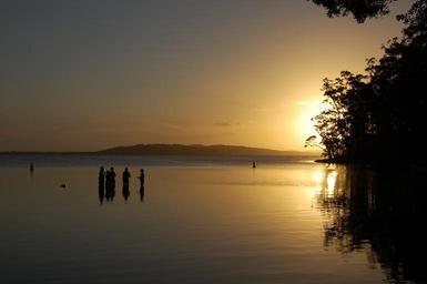 Keywords: australia sea lake sunset group landscape rest mood atmospheric silhouette abendstimmung golden dusk back light sky romantic water evening idyllic holiday recovery personal wide