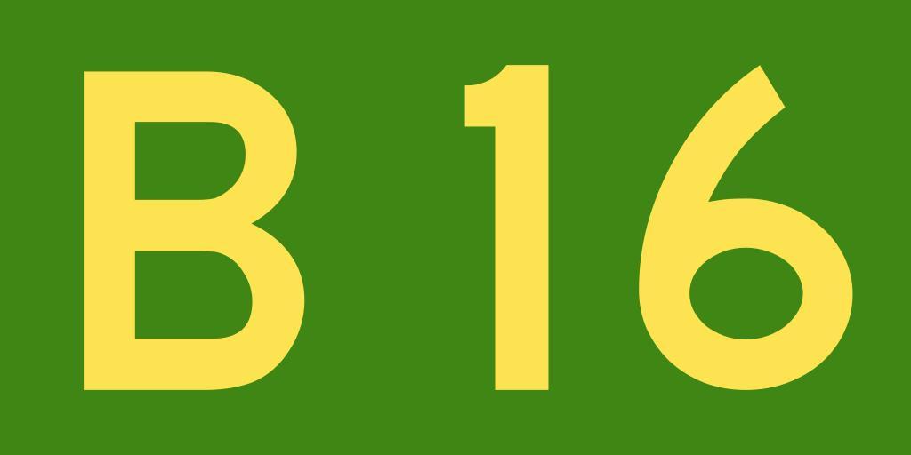 Keywords: Australian Alphanumeric State Route B16.svg An Australian road sign created from pixel images 2009-01 Amada44 Own work all rights released Public domain Australian Alphanumeric Route shields